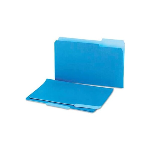 Universal recycled interior file folders, 1/3 cut top tab, legal, blue, 100/box subdivide records within a hanging folder. File folders fit inside hanging folders without obscuring tabs. File folder type: interior;top tab; size: legal; folder material: 11 pt. Stock. this product arrives to most customers in 2-3 business days.