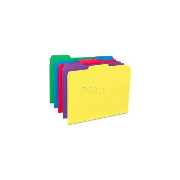 Universal recycled interior file folders, 1/3 cut top tab, letter, assorted, 100/box subdivide records within a hanging folder. File folders fit inside hanging folders without obscuring tabs. File folder type: interior;top tab; size: letter; folder material: 11 pt. Stock. this product arrives to most customers in 2-3 business days.