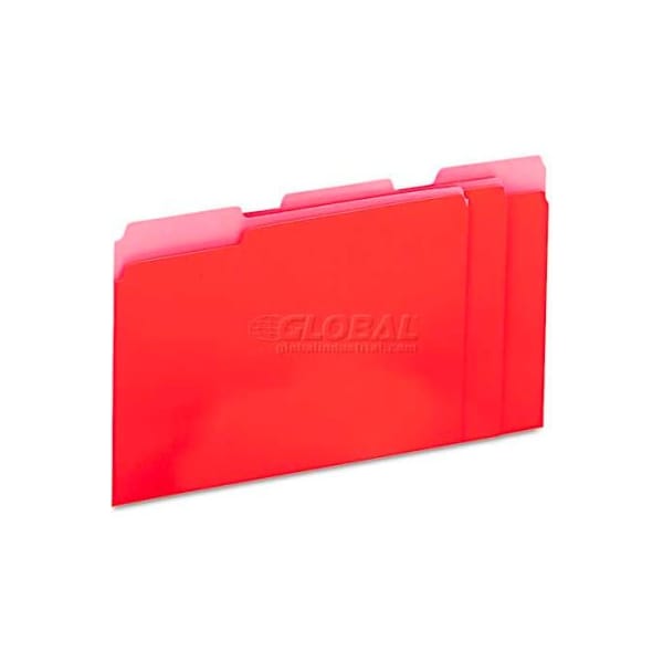 Universal recycled interior file folders, 1/3 cut top tab, letter, red, 100/box subdivide records within a hanging folder. File folders fit inside hanging folders without obscuring tabs. File folder type: interior;top tab; size: letter; folder material: 11 pt. Stock. this product arrives to most customers in 2-3 business days.