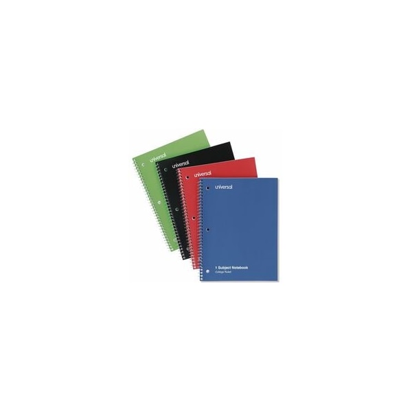 Universal Wirebound Notebook, 1 Subject, Medium/College Rule, Assorted Color Covers, 10.5 x 8, 70 Sheets, 4/Pack