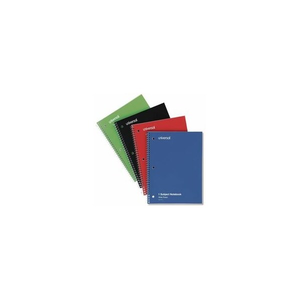 Universal Wirebound Notebook, 1 Subject, Wide/Legal Rule, Assorted Color Covers, 10.5 x 8, 70 Sheets, 4/Pack