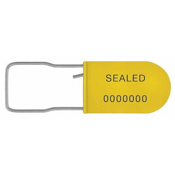 Padlock Seals, Stainless Steel, Yellow, Marking Parameters Consecutive Numbering, SEALED, Breaking Strength 100 lb, Package Quantity 50