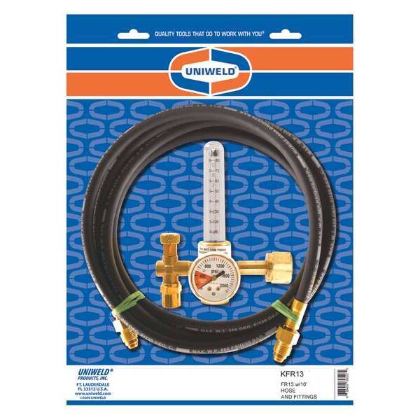 Flowmeter Regulator and Hose Kit, Carbon Dioxide, Single Stage, 0.825"-14 Inlet, 5/8"-18 Outlet
