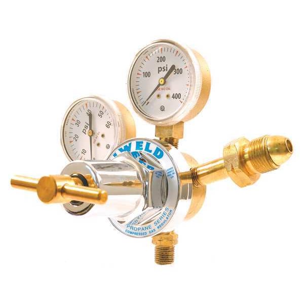 Stage Regulator, Maximum Gauge Outlet Pressure 400 psig, Number of Stages Single Stage, Compatible Gas Type Propane, Propylene, Control Type T-Handle, Inlet Connection Type NGO, Inlet Connection Gender Female, Inlet Connection Size 0.880 In.-14, Outlet Pressure (Maximum) 40 psig, Outlet Connection Gender Male, Outlet Connection Size 9/16 In.-18, Outlet Connection Type UNF, Body Material Brass, Body Finish Polished, Diaphragm Material Neoprene, CGA Number CGA 510, Hose Fitting Size B