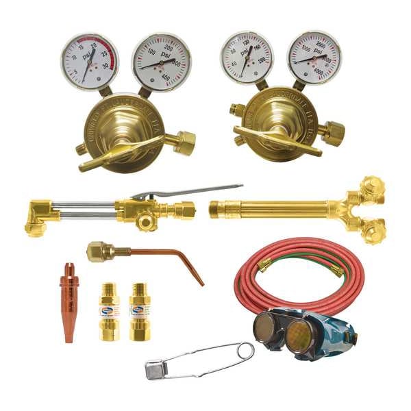 Outfit CGA300 HD w/FB Arrestors, Compatible Fuel Type Acetylene, Kit Series All-American, Torch Handle Model WH360, Cutting Tip Manufacturer Part Number 1-101-1, Cutting Attachment Manufacturer Part Number 780A, Head Angle 90 Degrees , Welding and Brazing Tip Manufacturer Part Number Type 4-1, Regulator CGA Number (Fuel) CGA 300, Regulator CGA Number (Oxygen) CGA 540, Hose Fitting Size B, Hose Length 20 ft, Product Type Combination Torch & Tip Kit, Torch Style Victor