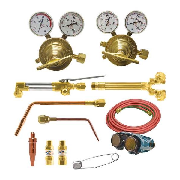 HD Outfit CGA300 w/Flashback Arrestors, Compatible Fuel Type Acetylene, Kit Series Roughneck II, Torch Handle Model WH360, Cutting Tip Manufacturer Part Number 1-101-1, Cutting Attachment Manufacturer Part Number 780A, Head Angle 90 Degrees , Heating Nozzle Manufacturer Part Number TYPE 11-8, Welding and Brazing Tip Manufacturer Part Number Type 4-2, Regulator CGA Number (Fuel) CGA 510, Regulator CGA Number (Oxygen) CGA 540, Hose Fitting Size B, Hose Length 25 ft