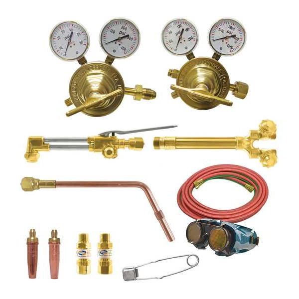 Propane Outfit CGA510 w/Flashback Arrestors/GPP-1, Compatible Fuel Type Propane, Kit Series Roughneck Propane, Torch Handle Model WH360, Cutting Tip Manufacturer Part Number GPN-2, Cutting Attachment Manufacturer Part Number 780A, Head Angle 90 Degrees , Heating Nozzle Manufacturer Part Number TYPE 12-8, Regulator CGA Number (Fuel) CGA 510, Regulator CGA Number (Oxygen) CGA 540, Hose Fitting Size B, Hose Length 25 ft, Product Type Combination Torch & Tip Kit, Torch Style Victor