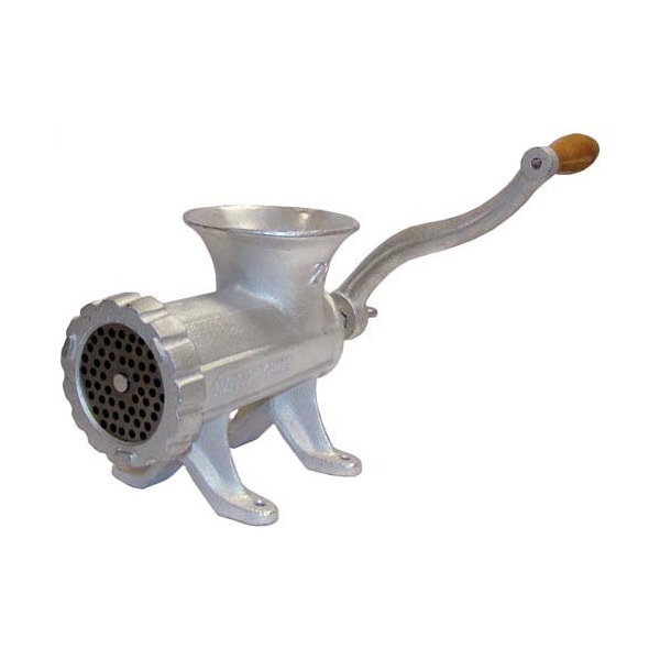Manual Meat Grinder, #22;Heavy Duty Cast Iron With Tin Plating,;Complete With Grinder Knife # 26-3762 And; 1/4" Grinder Plate # 26-4062,;Replacement Parts:;Grinder Plate, 1/8", # 26-4060;Grinder Plate, 3/16", # 26-4061;Grinder Plate, 1/4", # 26-4062;Grinder Plate 3/8", # 26-4063;Grinder Plate 1/2", # 26-4064;Grinder Knife, # 26-3762;Stuffing Tubes, Hub Size 22;1/2" # 26-3869;3/4" # 26-3677.