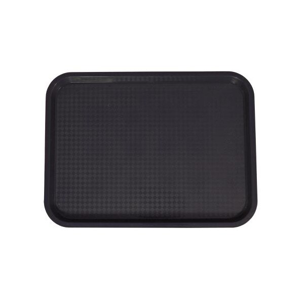 Fast food tray; 16 in (L) x 12 in (W); Plastic construction; Black color; Uniquely textured surface
