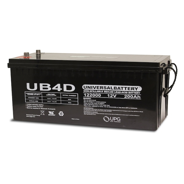 Sealed Lead Acid Battery, 12 V, 200Ah, UB4D, Auto Post Terminal, AGM Type