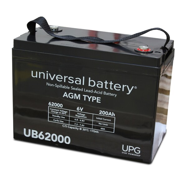 Sealed Lead Acid Battery, 6 V, 200Ah, UB62000, I4 Internal Thread Terminal, AGM, Group 27 Type