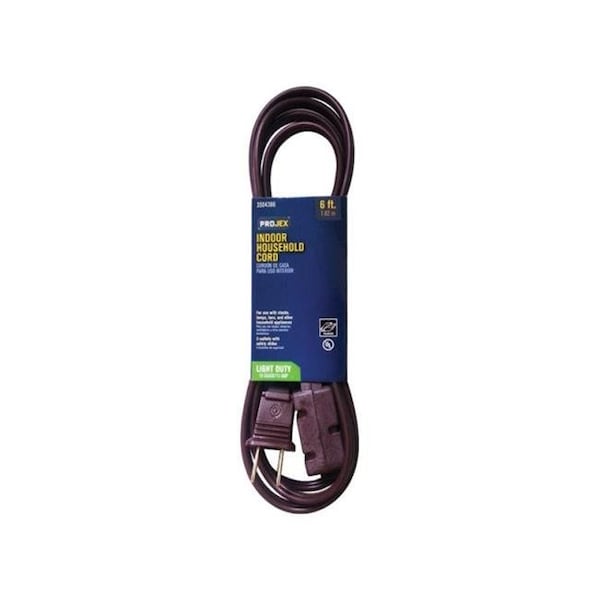 SPT-2 Extension Cord, 16 AWG, Indoor, 16/2, 3 Outlets, Brown, 6 ft