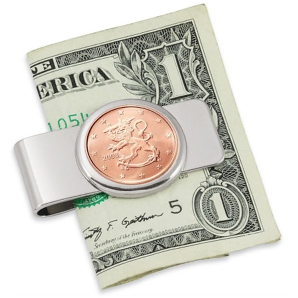 Finland Lion Five Cent Euro Coin Silvertone Money Clip (Discontinued)