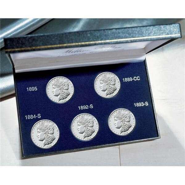 Enjoy owning a tribute set of key date Morgan Silver Dollars. Key dates include 1884 S. 1889 CC, 1892 S, 1893 S and 1895 P. Celebrate one of America's most beautiful coins with this replica collection. The coins are composed of brass and layered in silver.