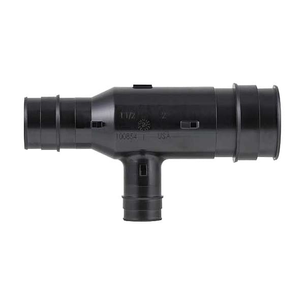 Barbed Tee, Specific Fitting Shape Reducing Tee, Application Potable Water, Fitting Material Polymer, Fitting Side A Connection Type Barbed, Fitting Side A Pipe Size 1 1/2 in, Fitting Side B Connection Type Barbed, Fitting Side B Pipe Size 1 1/4 in, Fitting Side C Connection Type Barbed, Fitting Side C Pipe Size 1 1/4 in, Overall Length 5 15/32 in, Standards ASTM E119/UL 263, ASTM E814/ULC S115, ASTM E84, ASTM F1960, ASTM F877, CSA B137.5, NSF/ANSI 14, NSF/ANSI/CAN 61, ULC S101, ULC S102.2