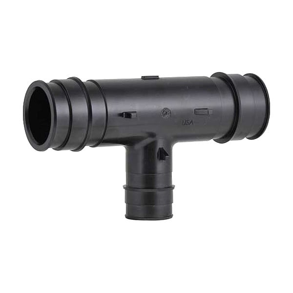 Barbed Tee, Specific Fitting Shape Reducing Tee, Application Potable Water, Fitting Material Polymer, Fitting Side A Connection Type Barbed, Fitting Side A Pipe Size 2 in, Fitting Side B Connection Type Barbed, Fitting Side B Pipe Size 2 in, Fitting Side C Connection Type Barbed, Fitting Side C Pipe Size 1 1/4 in, Overall Length 6 31/32 in, Standards ASTM E119, ASTM E814, ASTM E84, ASTM F1960, ASTM F877, CSA B137.5, NSF 14, NSF 61, Compatible Tube Material PEX