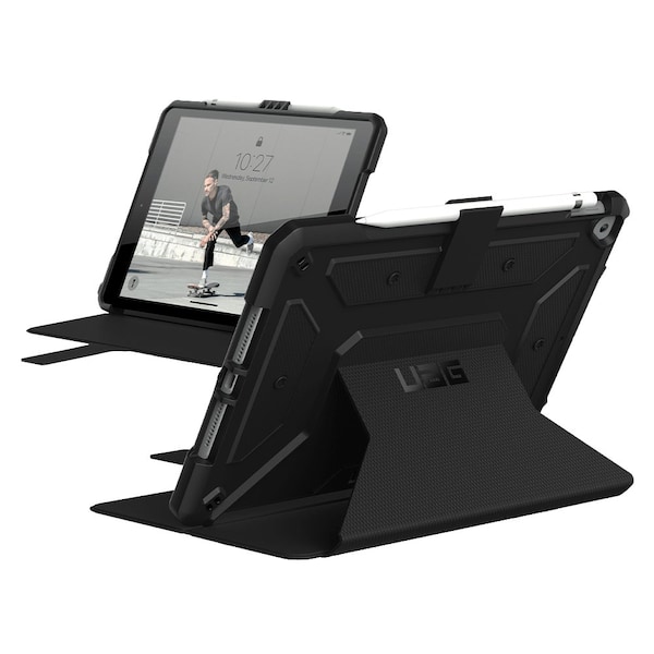 Urban Armor Gear UAG Folio Case The Urban Armor Gear Folio case is a tough and durable protector for a user's device. The feather-light composite construction and impact-resistant soft core help the case meet military drop test standards. A pocket allows users to hold up to 3 credit cards inside the case. The oversized tactile buttons and water-resistant Frog Skin grip material make it easy to hold onto and use the case. Product Features: Feather-light impact resistant core Water resistant FrogSkin Technology grip Holds up to 3 credit cards Easy access to touch-screen and ports Glare-free flash photos and uncompromised audio Meets military drop-test standards MIL STD 810G 516.6