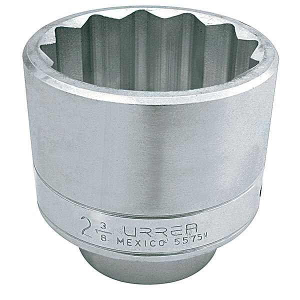 The Urrea 12-point socket is made of high-quality steel, resulting in outstanding performance on the job. They feature a chrome-nickel finish to prevent corrosion. The 12 point design has the advantage of distributing better force around a larger area on the nut faces. more toward the center, not on the edges. The force is distributed to the sockets lobes, allowing you to fit hexagonal and square nuts or screws faster, all this thanks to its Super Drive geometry, featuring a 30° recovery angle. Opening size: 75mm. Type: III. Length: 3-13/16”.