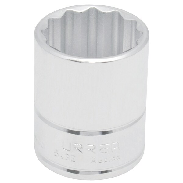 The Urrea 12-point socket line is made of high-quality steel, resulting in outstanding performance on the job. They feature a chrome-nickel finish to prevent corrosion. The 12-point design has the advantage of distributing better force around a larger area on the nut faces, more toward the center, not on the edges. The force is distributed to the scocket ́s lobes, allowing you to fit hexagonal, square nuts or screws faster, all this thanks to its Super Drive geometry, featuring a 30° recovery angle. Opening size: 29/32”. Length: 1-7/8”. Nut end outside diameter: 1-1/4”. Drive end outside diameter: 1-3/16”. Nut depth: 5/8".
