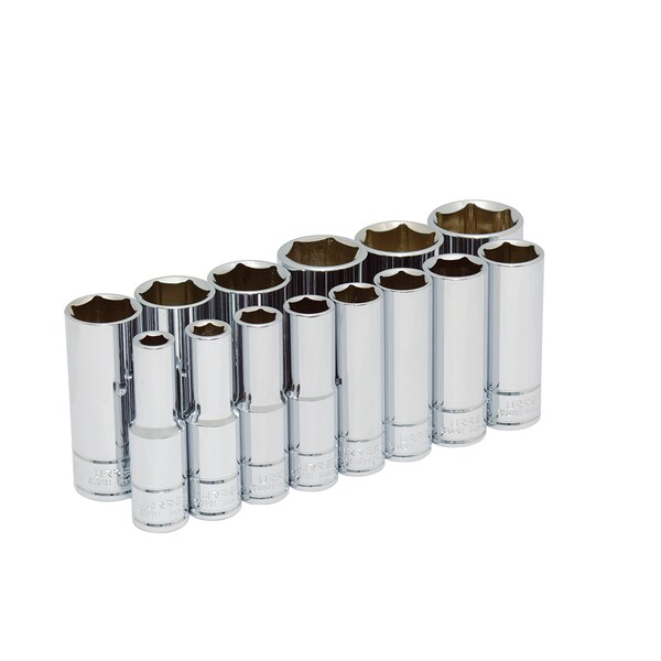 (2) Socket of 3-1/32" Length: 3/8", 7/16"; (12) Socket of 3-3/16" Length: 1/2", 9/16", 5/8", 11/16", 3/4", 13/16", 7/8", 15/16", 1", 1-1/16", 1-1/8", 1-1/4"