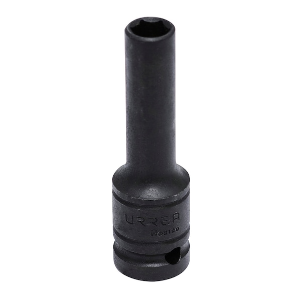 Reduced wall thickness helps improve access to fasteners in restricted areas. Through hole to be secured using a o-ring and retaining pin. Opening size: 16 mm. Type: I. Length: 3-1/4”. Nut end outside diameter: 7/8". Drive end outside diameter: 15/16". Nut deep: 9/16".