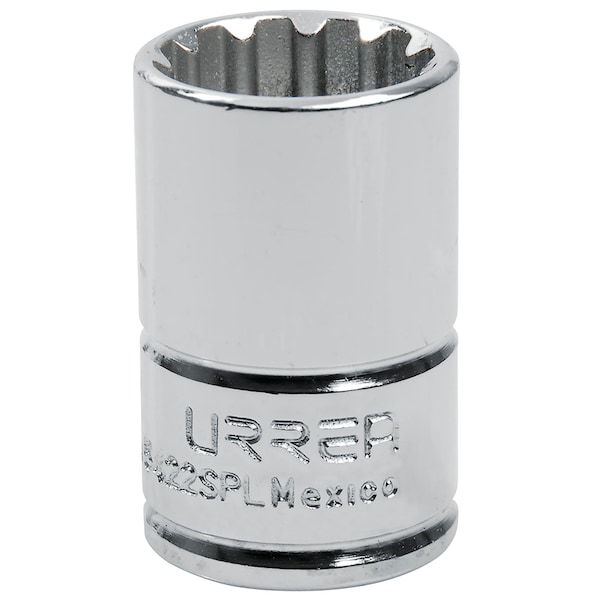 The spline socket design offers higher strength in a more compact profile, making it common on military and commercial aircraft. Urrea spline sockets are made from high quality steel. Polished chrome plated finished. Spline size: 22. Type: II. Inches: 11/16". MM: 17mm. Length: 5/32". Nut end outside diameter: 1/2". Drive end outside diameter: 5/16”. Nut depth: 17/32".
