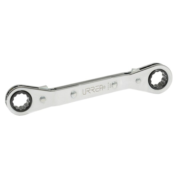 Reversible ratchet mechanism that allows to change direction without having to unhook it from the nut or screw. Thin body formed by two exterior plates and one solid interior body. Full polished with nickel-chrome finish prevents corrosion. Opening size: 3/8” x 7/16”. Total lenght: 5-7/16”.
