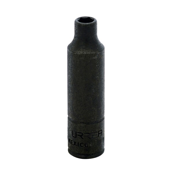 Urrea sockets have a super-Drive design that prolongs its life and does not damage the screws and nuts and bolts. Urrea sockets have a resistant phosphatized to finish recommended in case of FOD (foreign object detachment). It is recommended to use sockets with phosphatized finish prevent the shedding of coating particles. Urrea products is reinforced by showing an indelible and permanent mark with the country of origin. This meets ASME / ANSE norms, as well as rules established by the federal Trade Commission in the United States. Opening size: 8 mm. Type: I. Length: 2". Nut end outside diameter: 7/16". Drive end outside diameter: 1/2". Nut deep: 1/8".