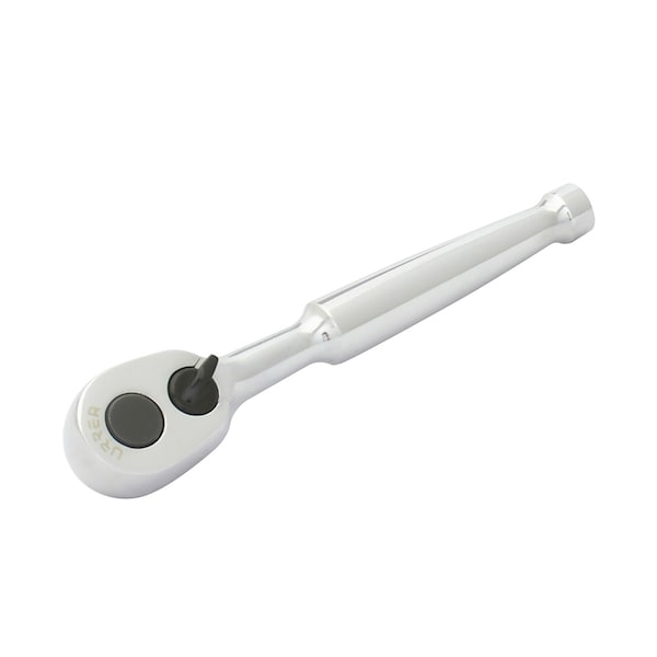 1⁄4” Hex bit ratchet, with Quick release system. Brings better torque transmission than traditional screwdrivers. Total length: 4”. Head width: 13/16”. Head Depth: 3/8”. Teeth: 60. Swing Arc: 6°. Head Type: pear.