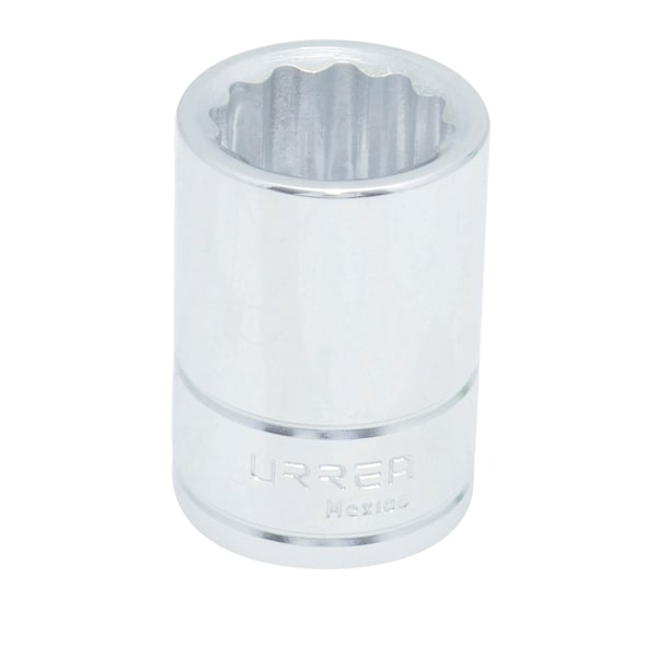 The Urrea 12-point socket is made of high-quality steel, resulting in outstanding performance on the job. They feature a chrome-nickel finish to prevent corrosion. The 12 point design has the advantage of distributing better force around a larger area on the nut faces, more toward the center, not on the edges. The force is distributed on the socket ́s lobes, allowing you to fit hexagonal and square nuts or screws faster, all this thanks to its Super drive geometry featuring a 30° recovery angle. Opening size: 27mm. length: 2".
