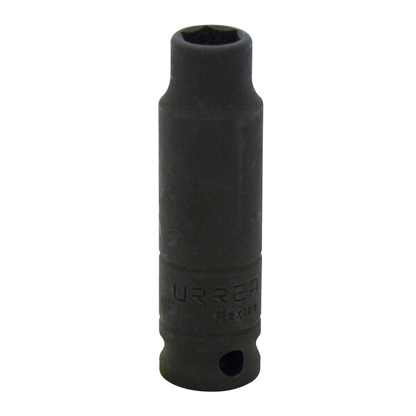 Urrea sockets have a super-Drive design that prolongs its life and does not damage the screws and nuts and bolts. Urrea sockets have a resistant phosphatized to finish recommended in case of FOD (foreign object detachment). It is recommended to use sockets with phosphatized finish prevent the shedding of coating particles. Urrea products is reinforced by showing an indelible and permanent mark with the country of origin. This meets ASME / ANSE norms, as well as rules established by the federal Trade Commission in the United States. Opening size: 5/16”. Type: I. Length: 2-1/2". Nut end outside diameter: 1/2". Drive end outside diameter: 3/4". Nut deep: 1/8".