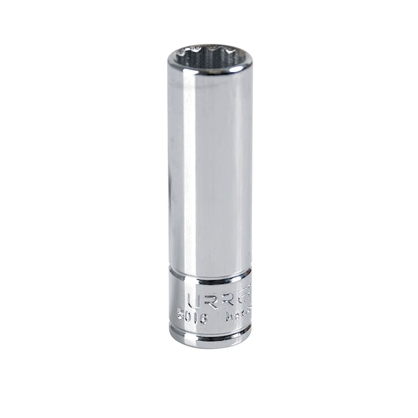 The URREA 3/8 in drive deep sockets, are made of chrome vanadium steel with nickel - chrome plated. The mouth of the sockets has a Super Drive® design that prolongs their life and does not damage the screws and nuts and bolts. Meets National and International standards: American and European.. Used for automotive and industrial maintenance and repair work for applications where a conventional socket is limited due to space constraints. There is an Urrea socket always available and ready for any challenge.