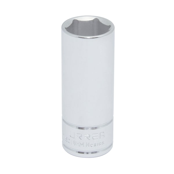 The URREA 3/8 in drive deep sockets, are made of chrome vanadium steel with nickel - chrome plated. The mouth of the sockets has a Super Drive® design that prolongs their life and does not damage the screws and nuts and bolts. Meets National and International standards: American and European.. Used for automotive and industrial maintenance and repair work for applications where a conventional socket is limited due to space constraints. There is an Urrea socket always available and ready for any challenge.