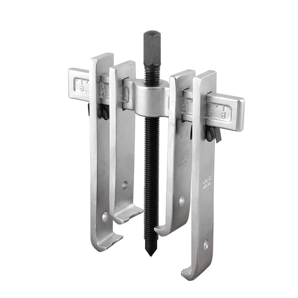 The URREA 4214 6 ton straight jaw puller set 8PC without metal box is an essential tool for any serious mechanic. It features a hex head that can be turned with socket and ratchet, which has a floating tip that exerts the extraction force. Forged head made of high-resistance steel. The die-cut and hardened metal clip holds the jaws to the puller's body, while interchangeable and adjustable jaws are great for different types of extractions. The URREA 4214 6 ton straight jaw puller set 8PC without metal box is what you need when faced with difficult extractions.