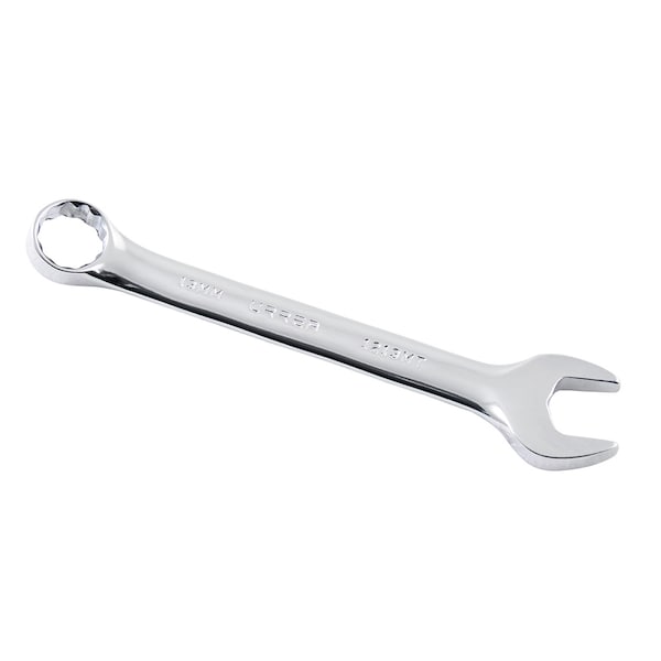 Full polished 12-point metric short combination wrench. Modern machines are more efficient, perform better and feature technological characteristics exceeding the imagination, but they are also more compact, providing less space when the time comes to repair or maintain them. 12-point box-end with 15° angle for comfortable handling. The Super Drive box-end distributes the torque force applied around the entire nut head, thus avoiding corner deformations. Opening dimensions: 13mm. Length: 5 1/4". Torsion Endurance: 548.7 Lb-In. 1017.7 Lb-In.