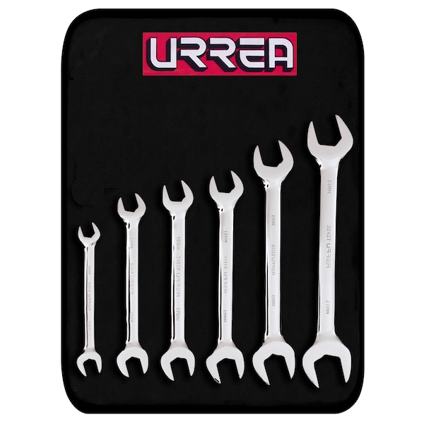 The set includes 6 wrenches, sizes: 8 x 9mm, 10 x 11mm, 12 x 13mm, 14 x 15mm, 16 x 17mm, 18 x 19mm. Thin ends for better access" narrow areas. Available" Metric and different sizes to fit a great variety of nuts and bolts. The openings are machined to precision for a perfect fit with nuts and bolts. High-quality molybdenum -vanadium steel alloy and controlled thermal-treatment. Exceed ASME B107.100 Standard.