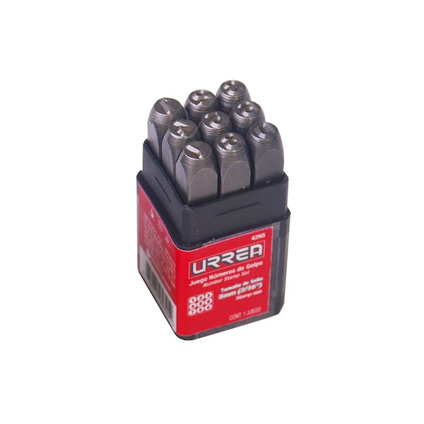 Made of high carbon steel with heat treatment induction tip, wich provides high resistance to impact and deformation. Striking area with bevel edge to reduce the risk of release splinters. The set includes numbers 0-9. Numbers size: 3/16".