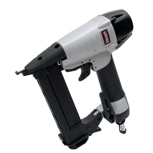 Thumbwheel for depth control. Die-cast magnesium light weight housing. Air pressure: 70-100 psi. Max pressure: 120 psi. Crown: 1/4”. Length staples: 1/2” and 1-9/16”. Caliber: 18 GA. Staple capacity: 100. Includes: Safety glasses, 2 hex keys, lubricant.
