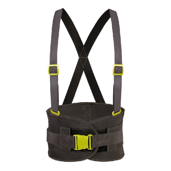 An important safety belt with extra straps gives you anatomical support neccesary for minimize the work injuries and also gives you abdominal support. Rigid reinforced belt. Elastic adjustable straps. 3 belts- elastic reinforced. With high visibility plastic clasp. Size: Large. Elastic width: 8".