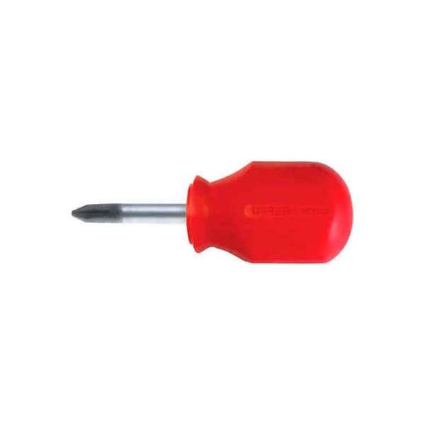 Urrea Red Handle Screwdriver, #2 Phillips Tip, 3-13/32L, 1 3/8L X 1/4 Stubby Round Shank