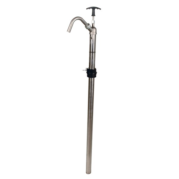 Brass, zinc, steel construction with aluminum die cast head, steel plunger rod and PTFE seals. Recommended for: kerosene, diesel, antifreeze, lacquer, thinners, high viscosity petroleum based media and some non corrosive chemicals. Delivers: 20 oz/stroke. Pump: Vertical lift stainless steel pump.