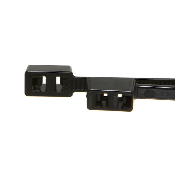 US Cable Ties double head cable ties are great for mounting mutliple bundles of cables or as a support or positioning of a single bundle. Double head ties are made from high strength and lightweight premium 6/6 nylon and meets UV resistance criteria for a minimum of 2 years exposure. Operating temperature is -40 to 185°F -40 to 85°C. AH-2 plenum rated and UL94-V2 flammability rating. ISO 9001 and RoHS Compliant. Double head ties are rated for 50 pound tensile strength on the primary loop and 40 pounds tensile strength for the secondary loop.