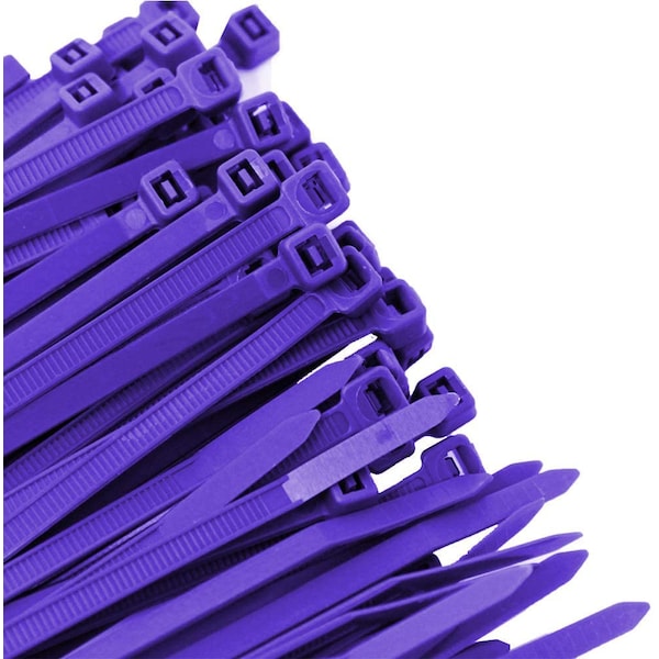 Cable Tie, 8 in L, 2 in Max Bundle Dia., Purple, Nylon 6/6, 50 lb Strength, 100 PK