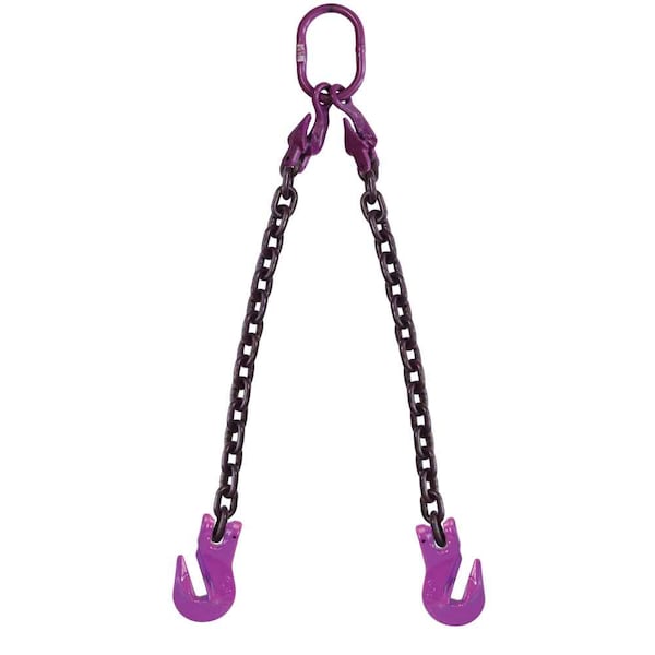 1/2" x 5' - Adjustable 2 Leg Chain Sling w/ Grab Hooks - Grade 100