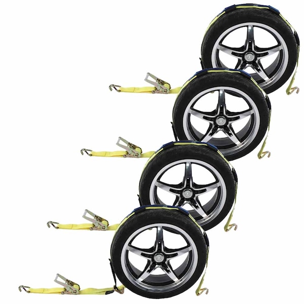 2" x 11' Car Carrier Ratchet Strap w/ Wire Hooks & 3 RubberCleats, 4Pk