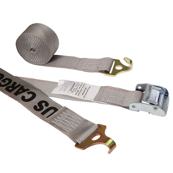 2" x 16' Gray Cam Strap w/ Plate Trailer F-Hooks