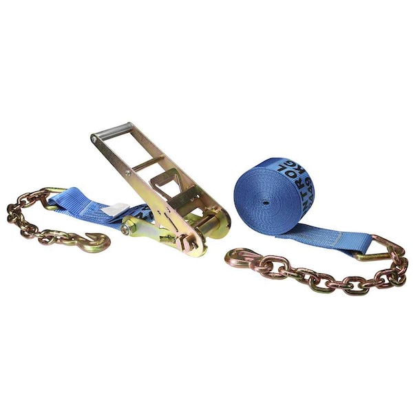 3" x 30' Blue Ratchet Strap w/ Chain Extensions