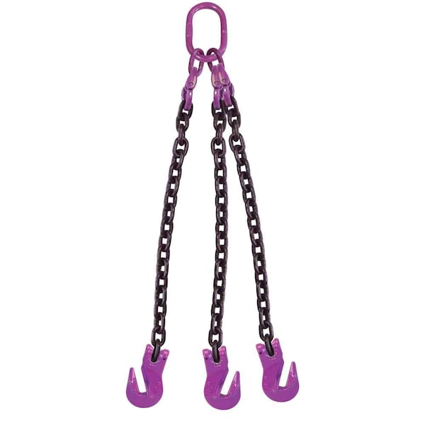 3/4" x 4' - 3 Leg Chain Sling w/ Grab Hooks - Grade 100