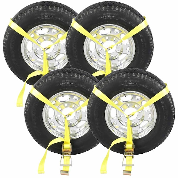 Side Mount Wheel Net with Ratchet and Flat Hook - 4 pack