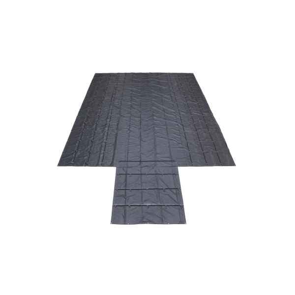 8 ft Drop Flap; Grade 6-7 UV pass through; Cold crack resistance up to -40°F; 3 Rows of D Rings; Seams are heat sealed, then d-ring rows are sewn on; 2" Welded D-Rings